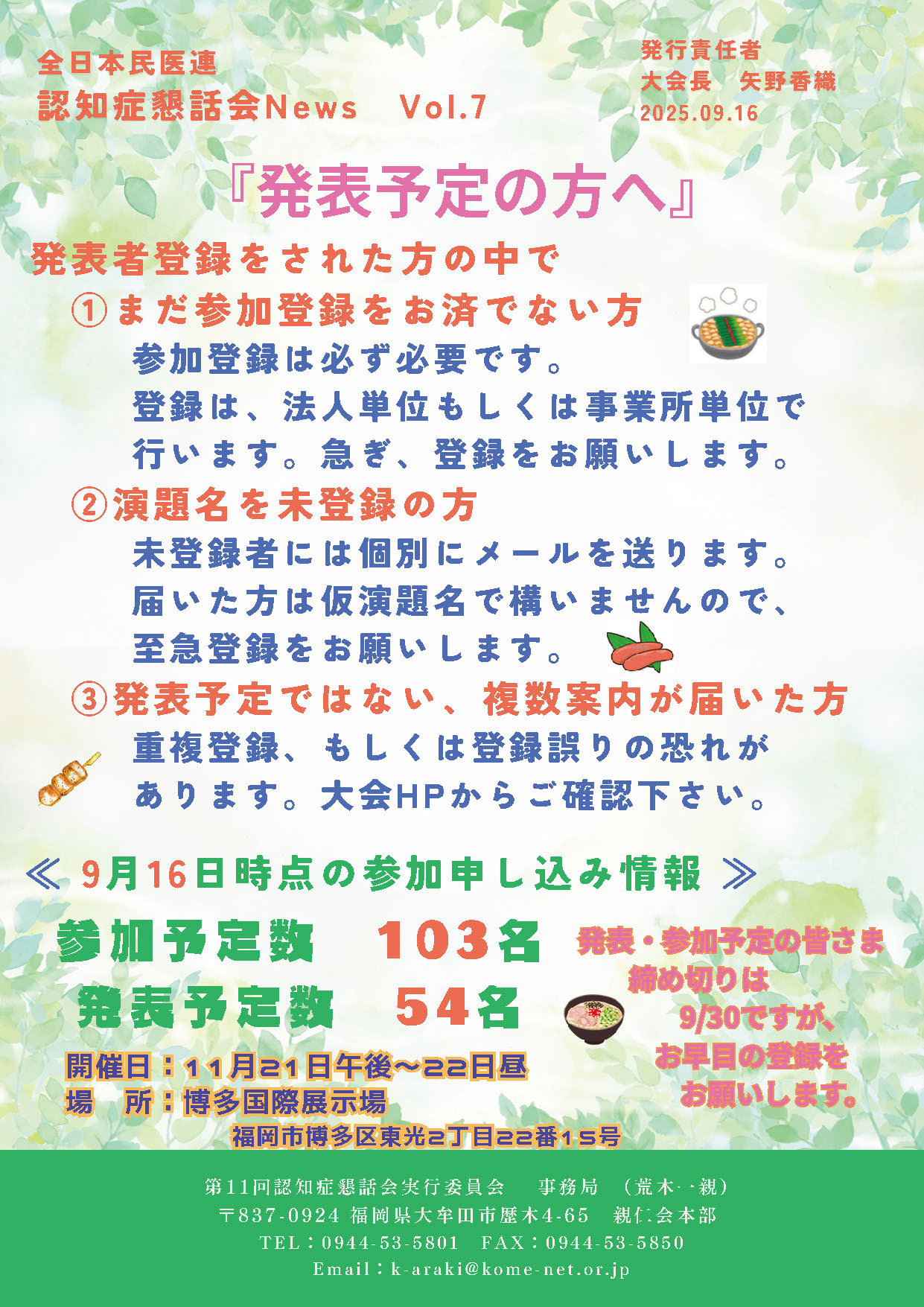 集 会 名:第11回全日本民医連認知症懇話会in福岡